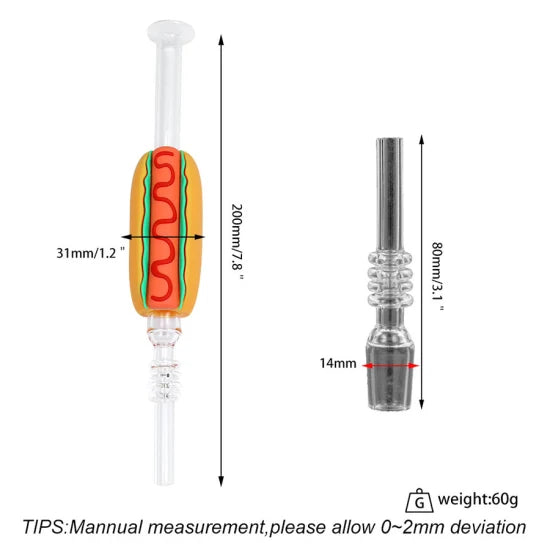 Eye-Catching Design: The Hot Dog Quartz Nectar Collector is not your typical nectar collector. Shaped like a hot dog, it adds a playful and whimsical touch to your concentrate sessions, making them more enjoyable and memorable.