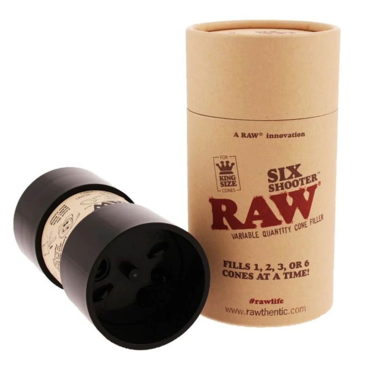 - Functional | Can roll one, two, or six king-size RAW cones in less than one minute! The Six Shooter gives you the luxury of filling pre-rolled cones without making a mess or wasting herbal blends in the process. Also serves as a cone storage.
