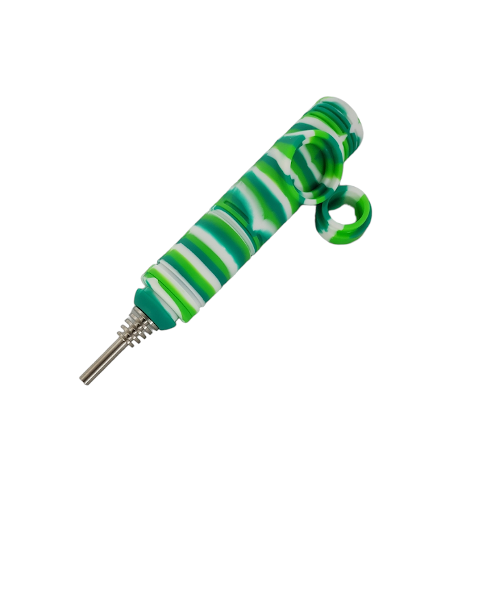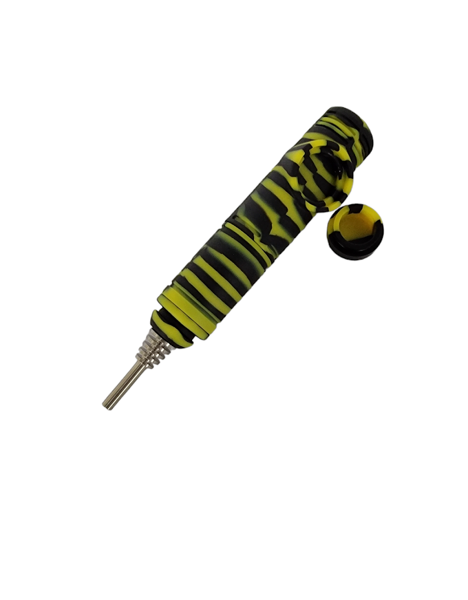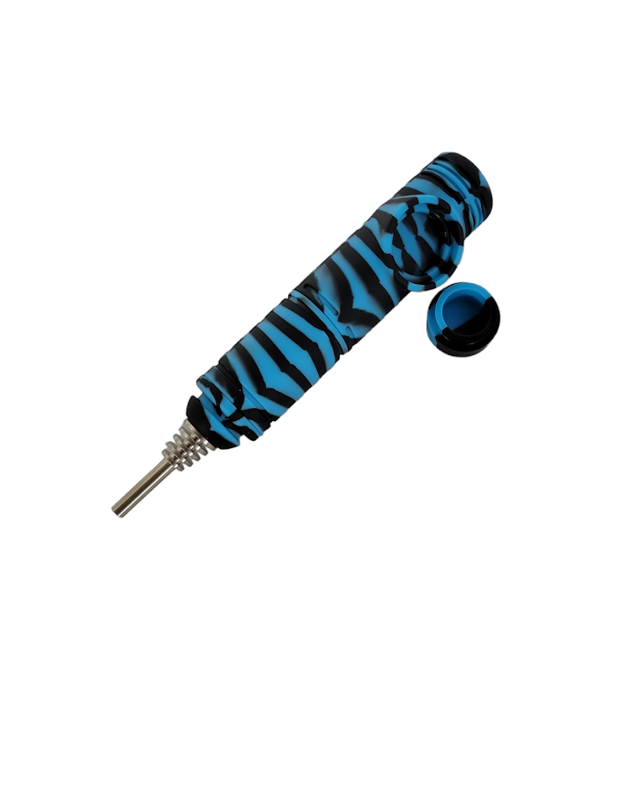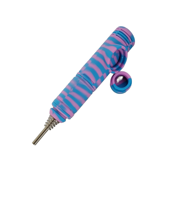 Here it is! The Infamous Silicone Nectar Collector. The look is unique and it has special features such as the built in storage container and heat shield. Eyce Silicone Nectar Collector function is unmatched and has a multi percolating water filtration. This nectar collector measures 8 inches long and the domed perc can be removed for a more travel friendly 6 inches dab straw. The titanium nozzle can also be used with the Eyce Shortly.