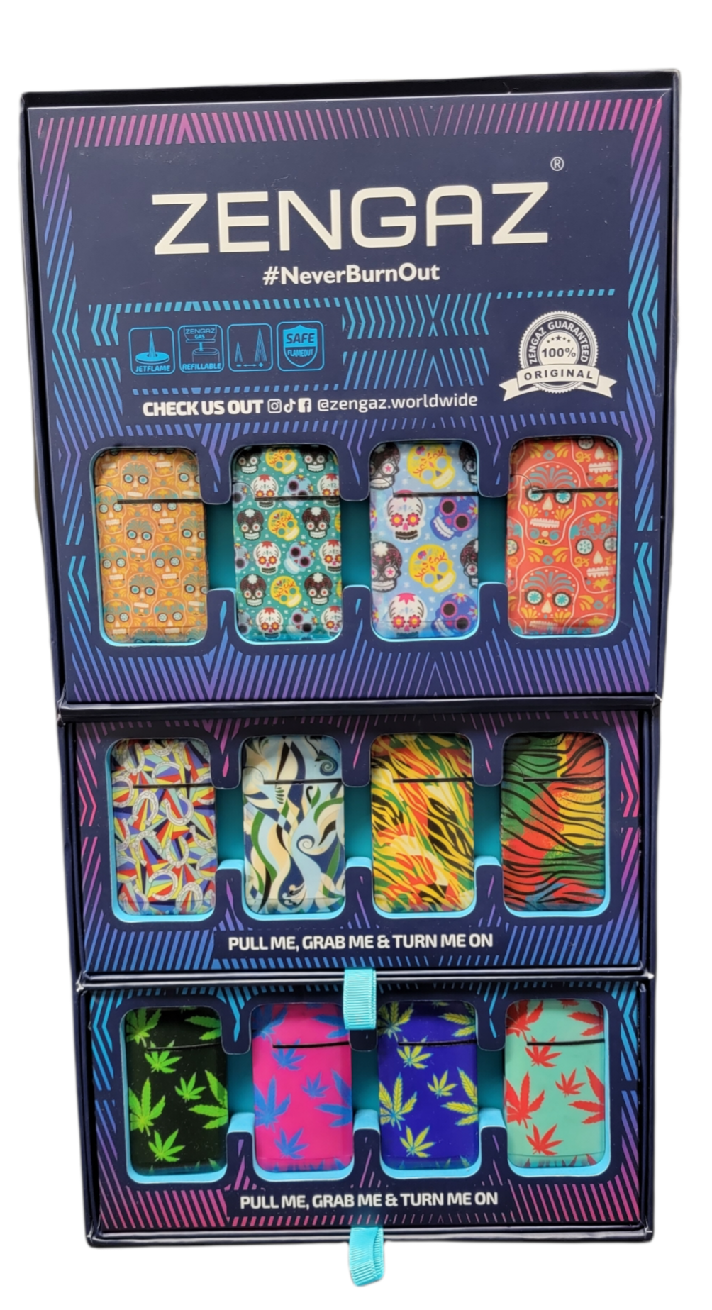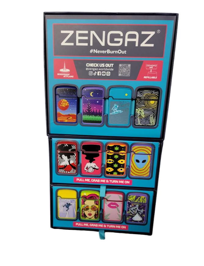 The Zengaz Wing Jet Torch Cube Display is a great addition to any home. It is perfect for those who love to cook or entertain. The Wing Jet Torch Cube Display features a mix of different designs that are sure to add a touch of style to any kitchen. The display includes four different colors: red, blue, green, and white. Each color is represented by two different designs.